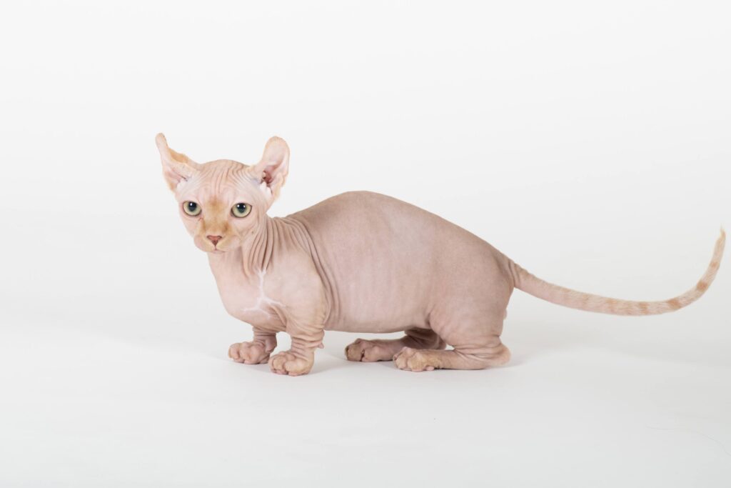Con su aspecto llamativo y distintivo, es el más bonito de todos. Es calvo como el Sphynx, enano como Munchkin y  de orejas curvas como el American Curl.